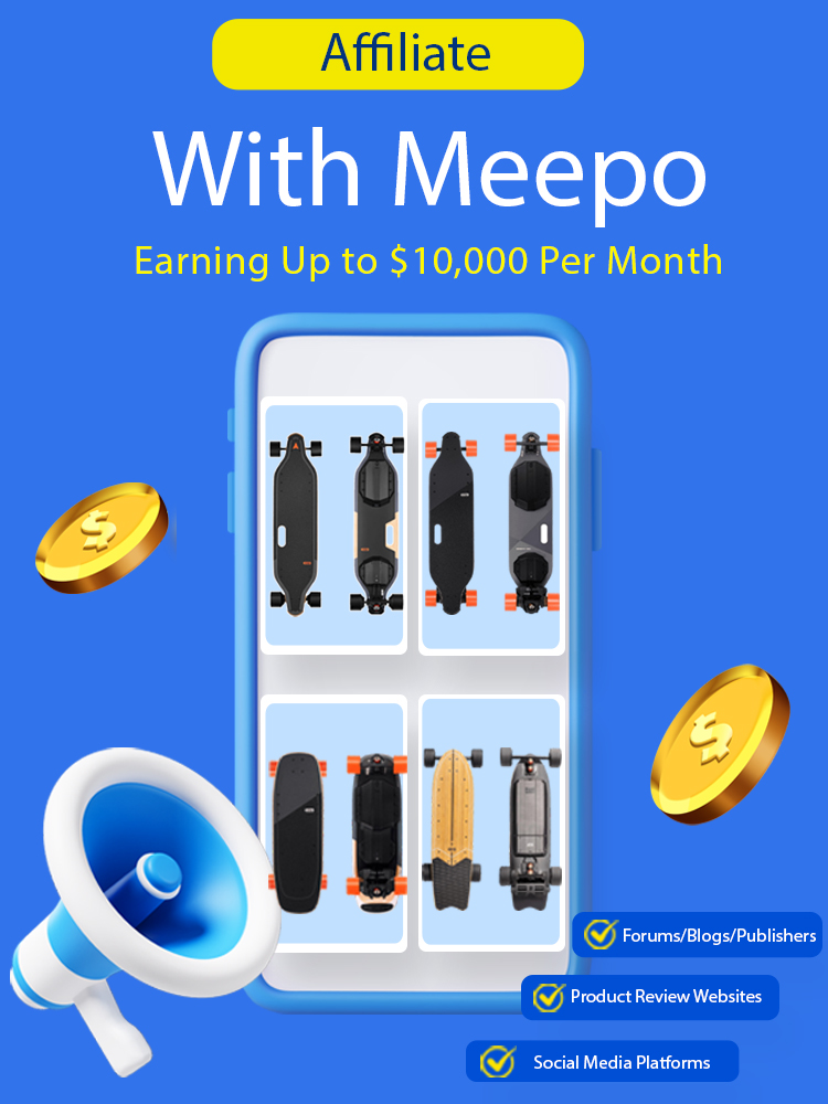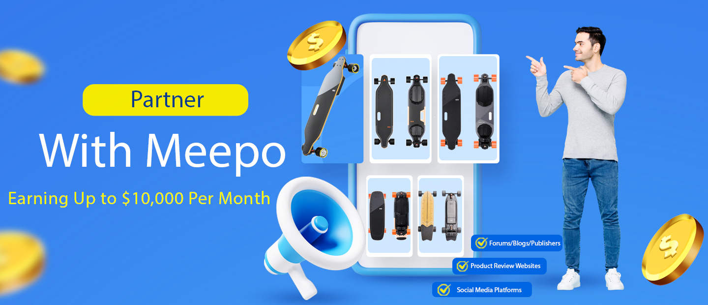 The Meepo Affiliate Program invites review sites, online communities, bloggers, and other content creators to promote products and services on their sites and earn commissions on the sales they refer to meepoboardeu.com.