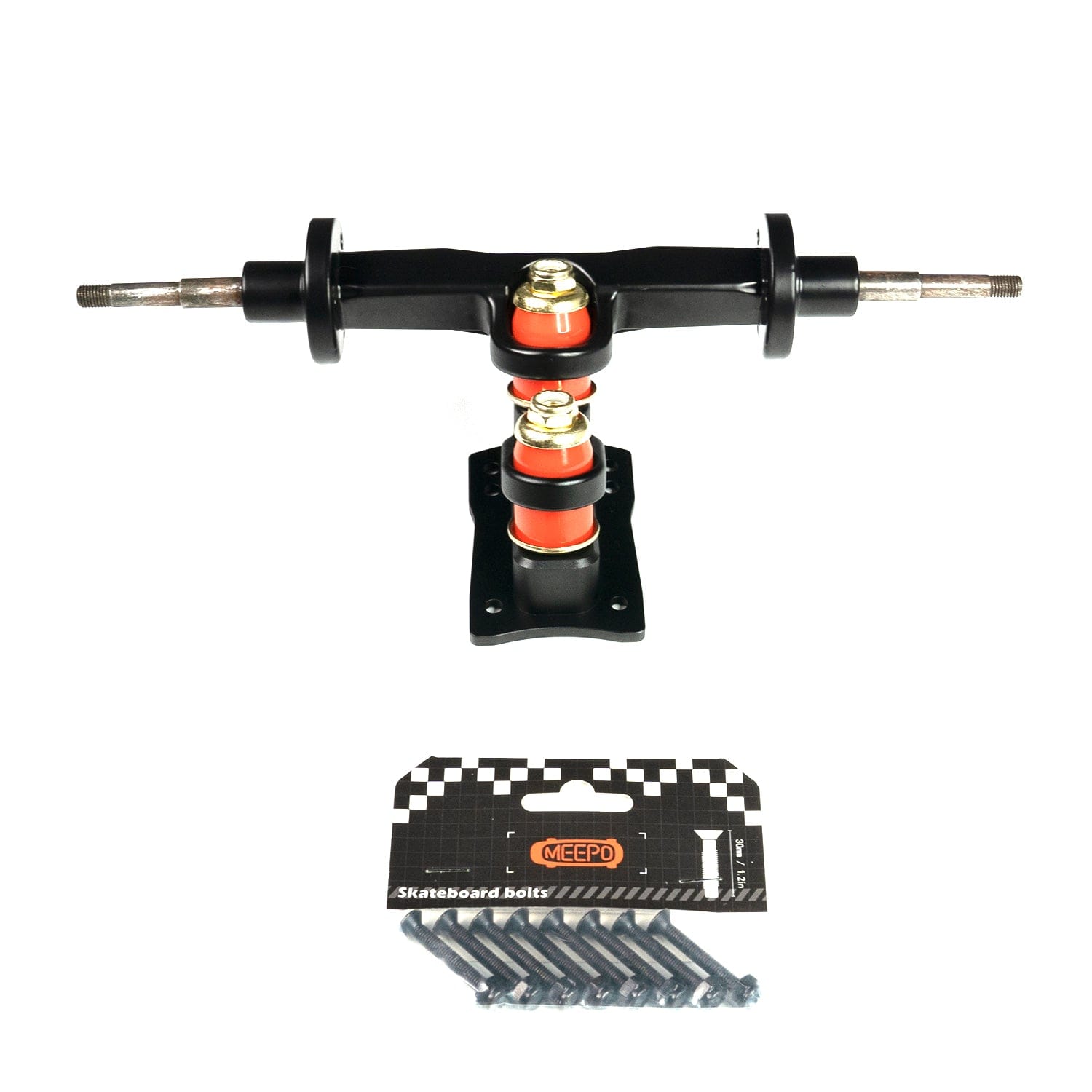 Front truck includes: CNC Truck connector *1, CNC Base plate*1,Bushing*4, front axle*1
